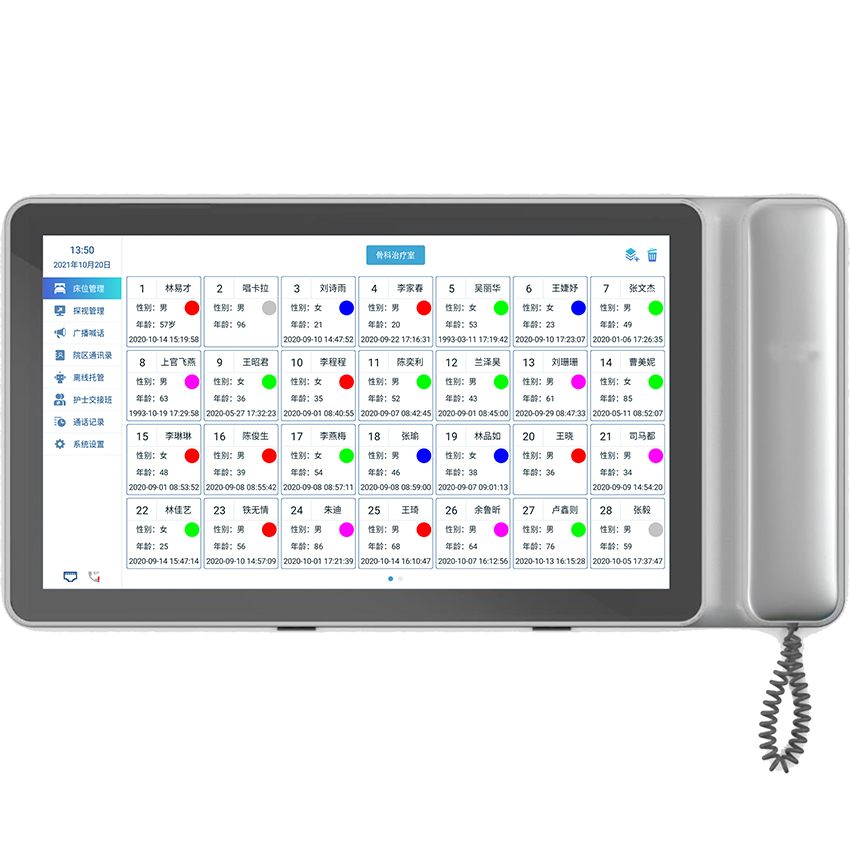 病員一覽表:可顯示每路病床智能終端、分機(jī)的患者信息,并支持接入病員一覽表顯示。